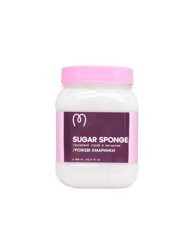 Скраб для тіла Sugar Sponge Рожеві Хмаринки ніжно відлущує ороговілі клітини та турботливо доглядає за тілом завдяки цукровій основі та подрібненим шкаралупкам мигдалю.
