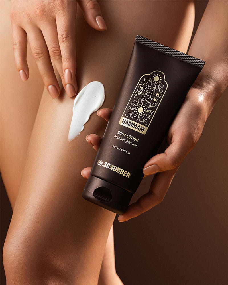 Лосьйон для тіла Hammam Mr.SCRUBBER з олією ши, скваланом та вітаміном Е. Інтенсивне зволоження, шовковиста текстура та стійкий аромат амбри, ванілі та пачулі. Купуйте у GreenShop.