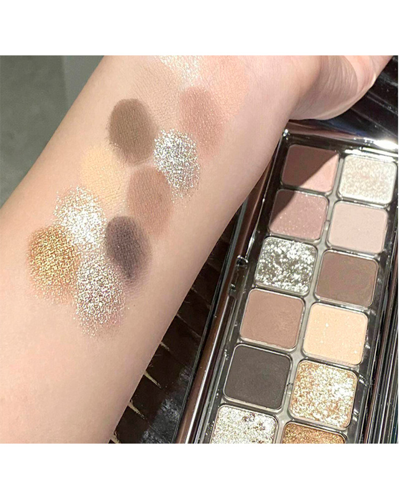 У палетці Dikalu Coco Venus №03 представлені матові та шиммерні текстури. Шимерні відтінки мають насичений сатиновий блиск — вони красиво відбивають світло, додають погляду глибини та роблять макіяж більш святковим без ефекту грубих блискіток. Їх зручно використовувати як акцент на рухомій повіці або у внутрішньому кутику ока.
