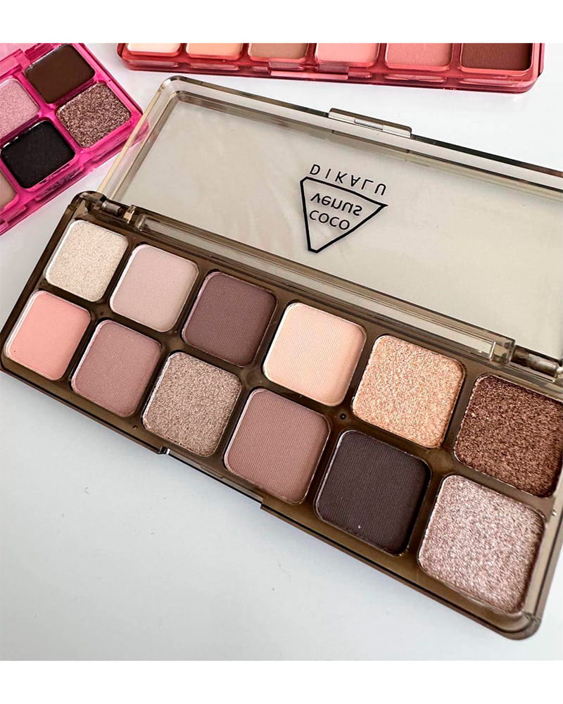 Палетка тіней Dikalu Coco Venus №03: 12 трендових відтінків, матові та шиммерні текстури, стійкий макіяж на весь день.