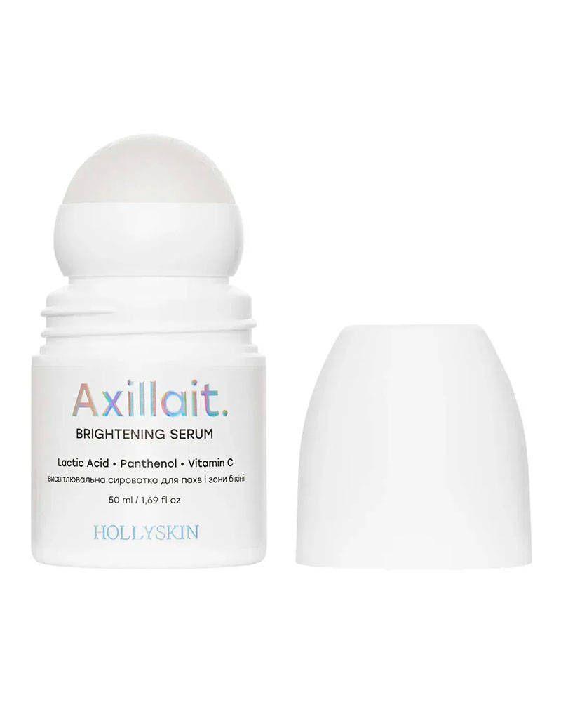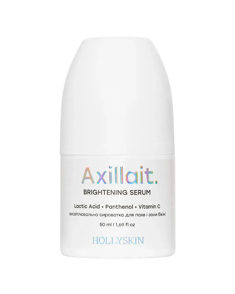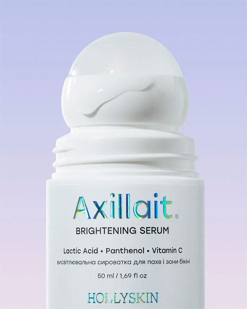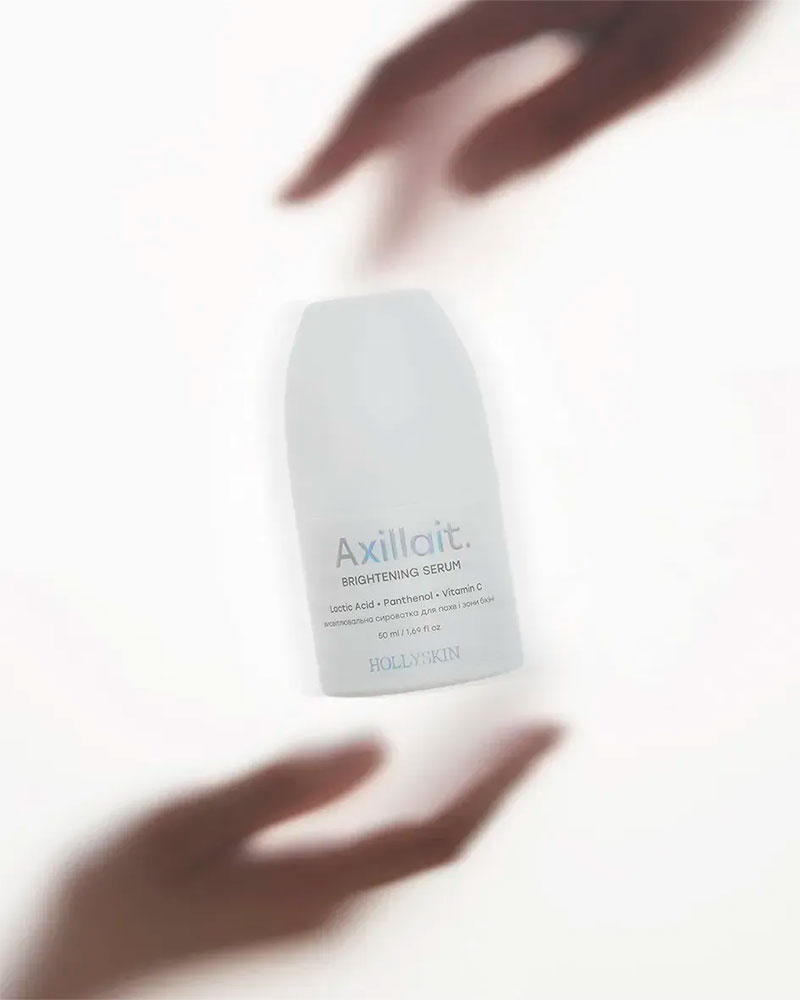 HOLLYSKIN Axillait — це інноваційна сироватка для делікатного догляду за зоною пахв та бікіні, яка допомагає висвітлити пігментацію, вирівняти тон і мікрорельєф, усунути сухість і подразнення. М’яка формула на основі молочної кислоти, пантенолу і стабільного вітаміну С дбайливо оновлює шкіру, не травмуючи її, і вже за декілька тижнів дарує помітний ефект вирівнювання та освітлення.