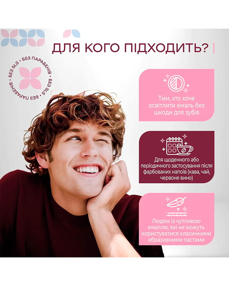 • Дія: відбілювання, зміцнення емалі, свіжість подиху