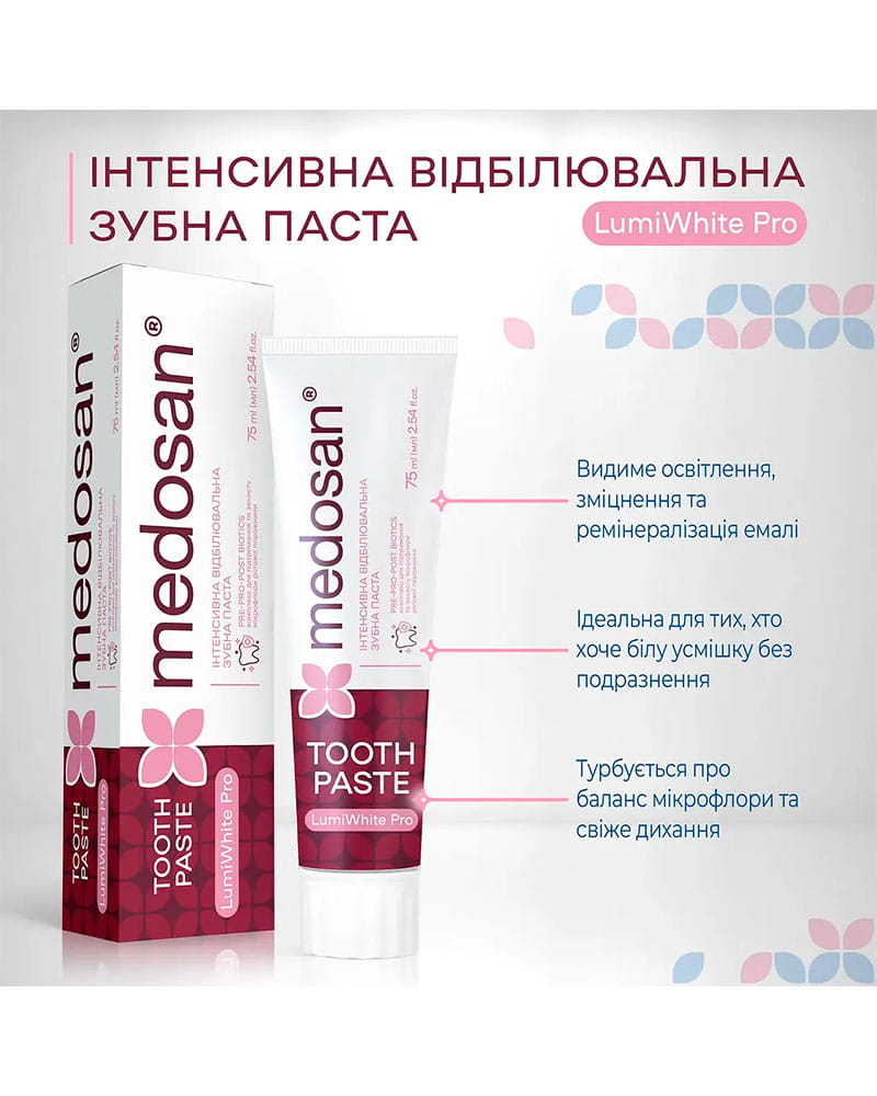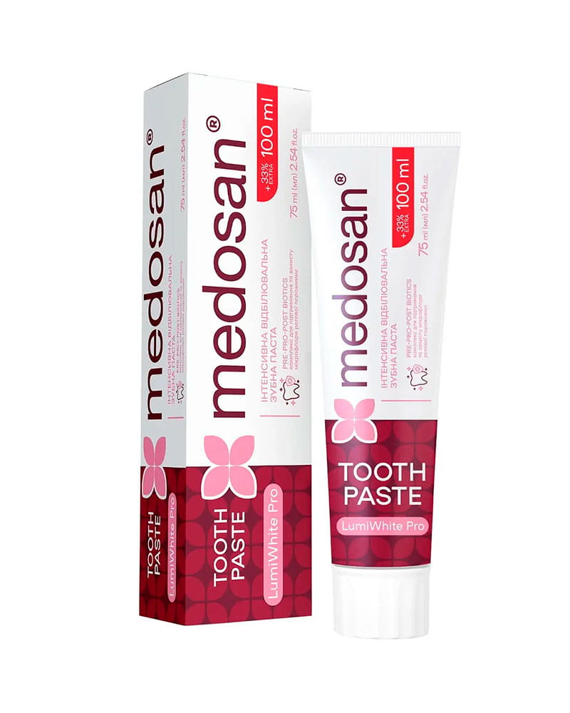 Зубна паста Medosan LumiWhite Pro інтенсивна відбілювальна, 75 мл
